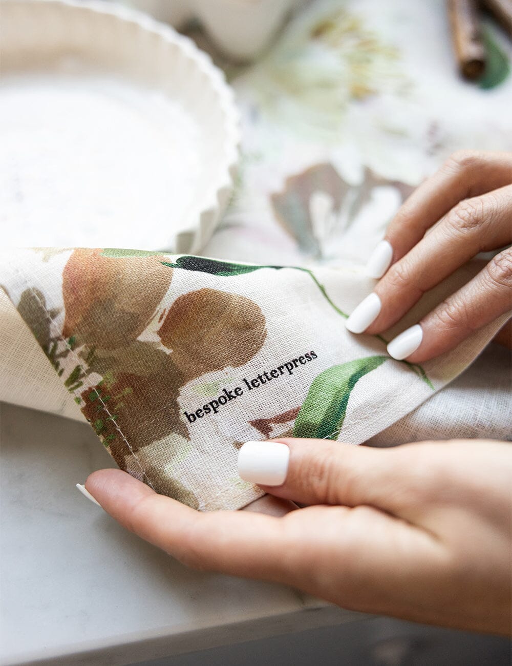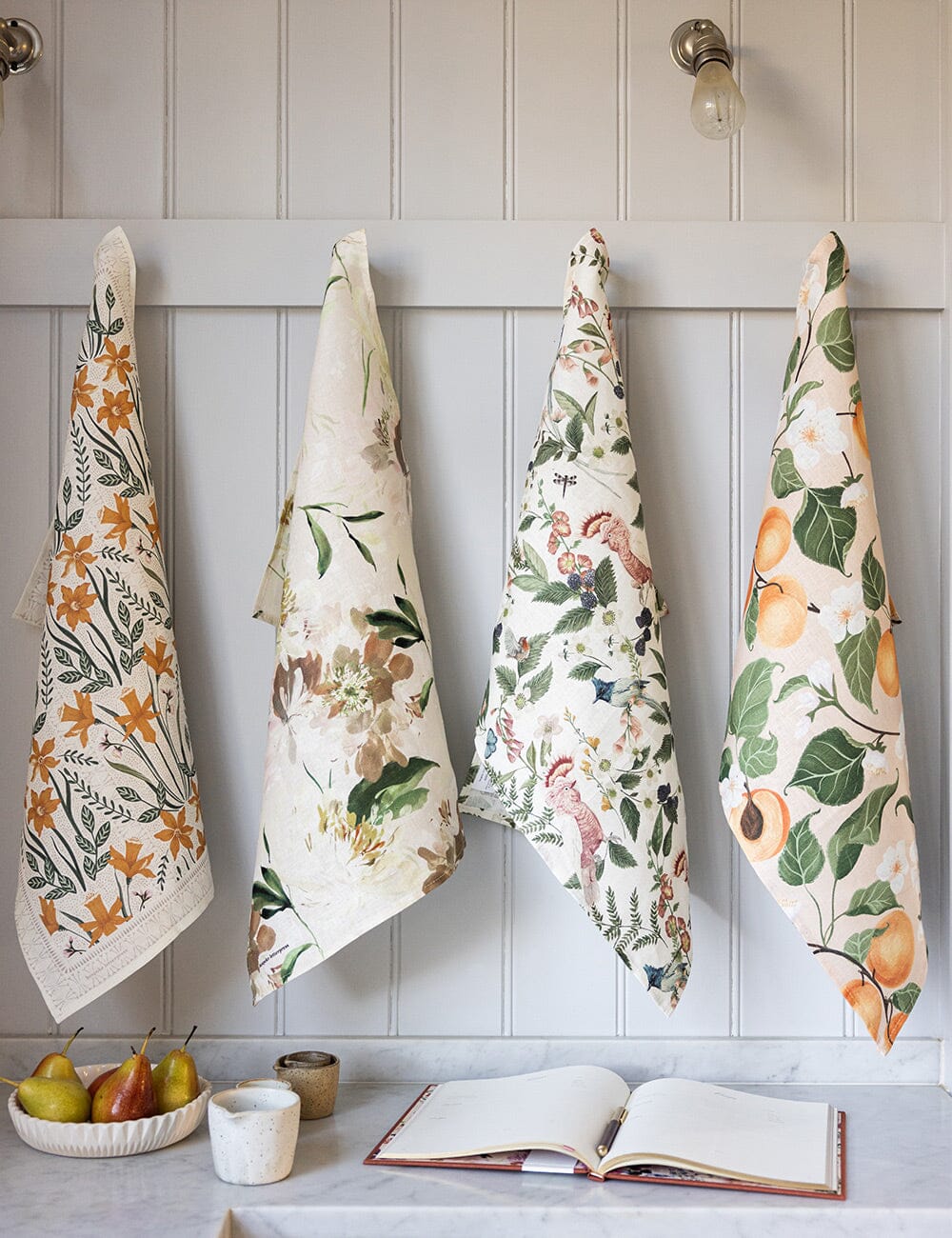 Artwork by Kelly Ventura and printed on 100% Linen Tea Towel. Supplied folded with a gold foil printed removable bellyband.