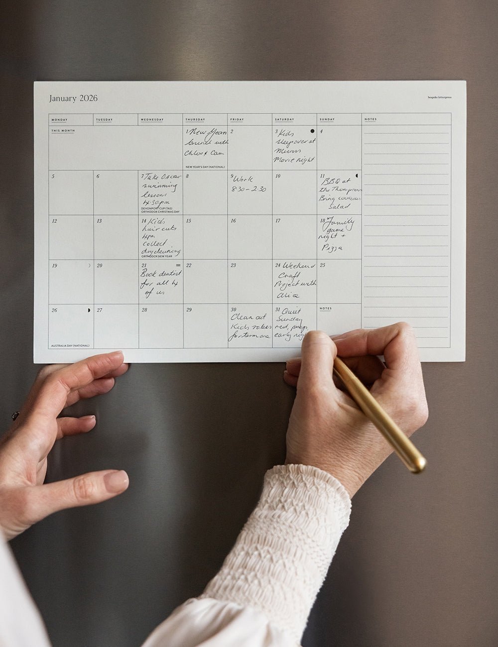 A page-per-month magnetic calendar printed on environmentally responsible, heavyweight paper. Featuring Australian public holidays, moon phases, horoscopes plus prompts to note important tasks, events and celebrations. It is the perfect notepad to help you plan a productive year.