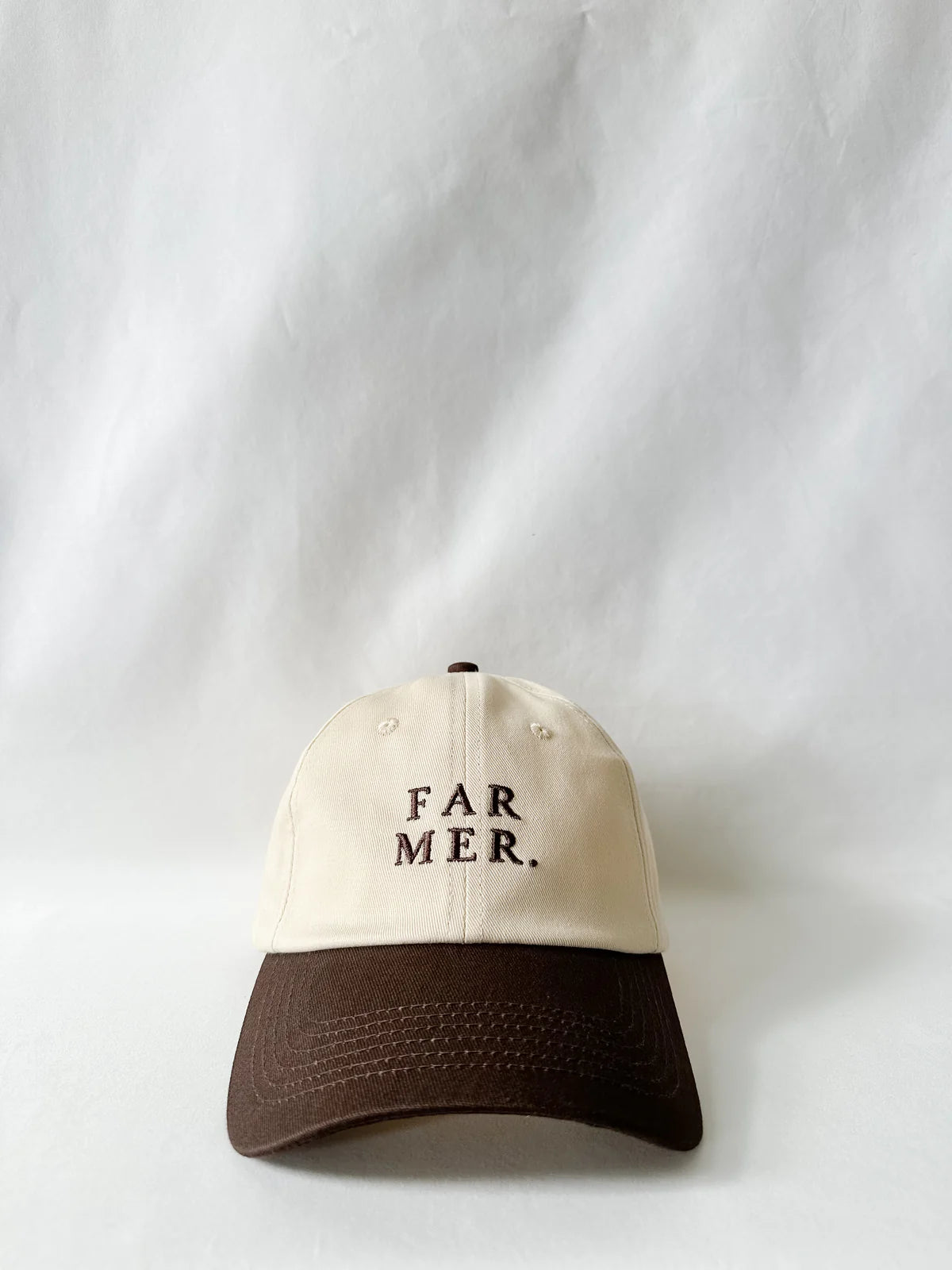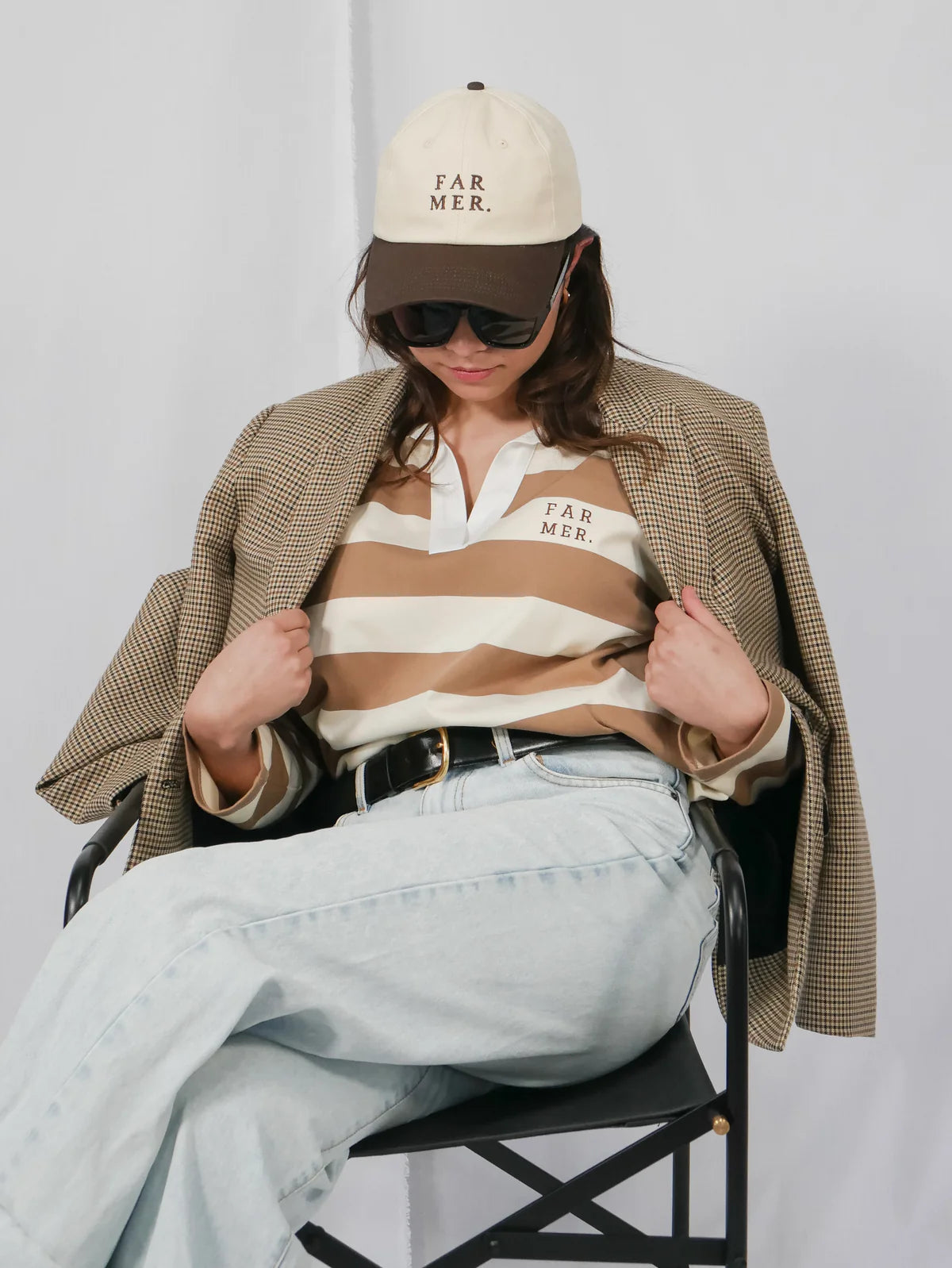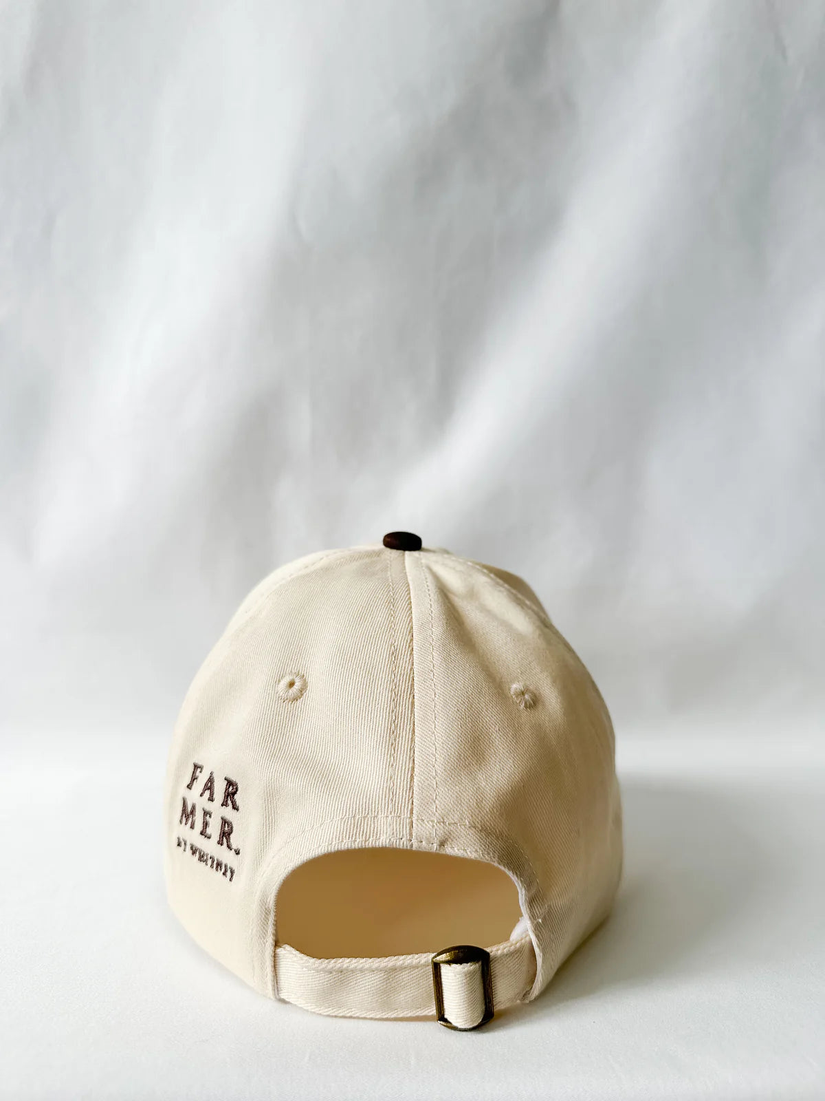 Embroidered FAR MER. logo on natural coloured background with adjustable metal buckle, relaxed & unstructured fit.