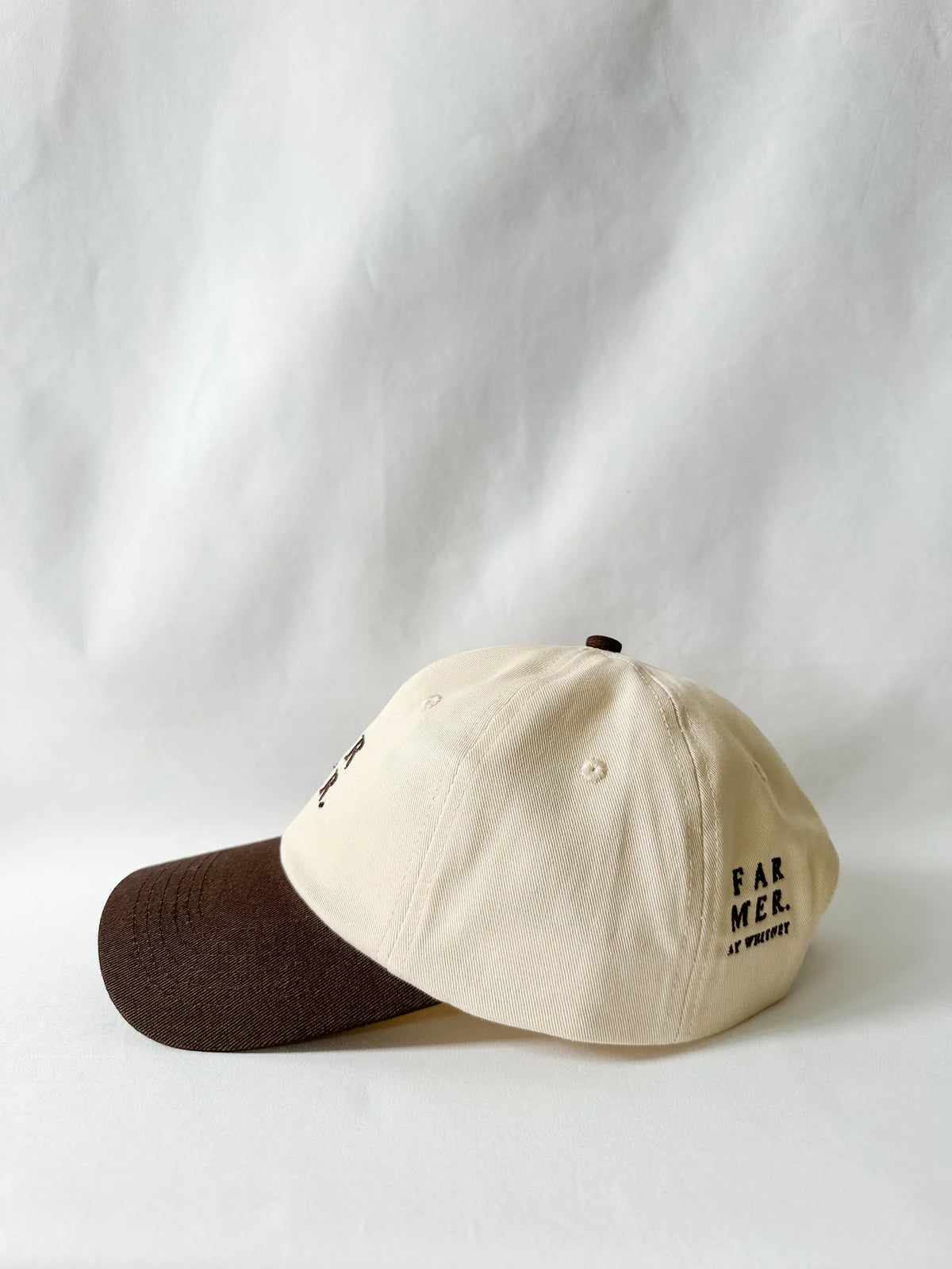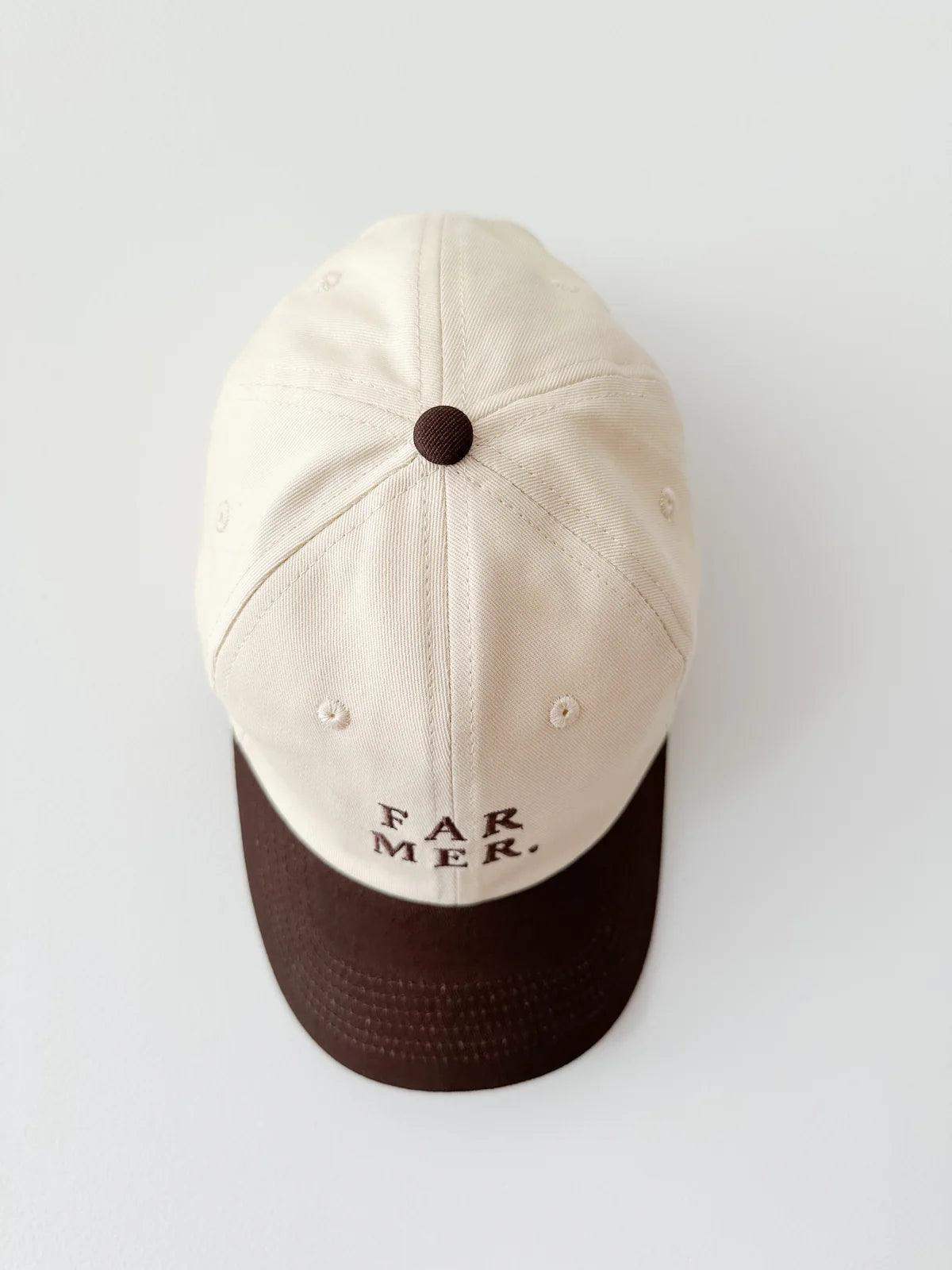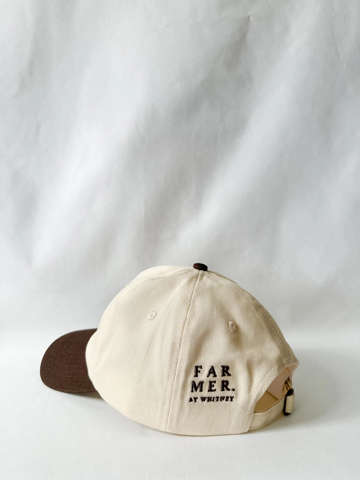 Embroidered FAR MER. logo on natural coloured background with adjustable metal buckle, relaxed & unstructured fit.
