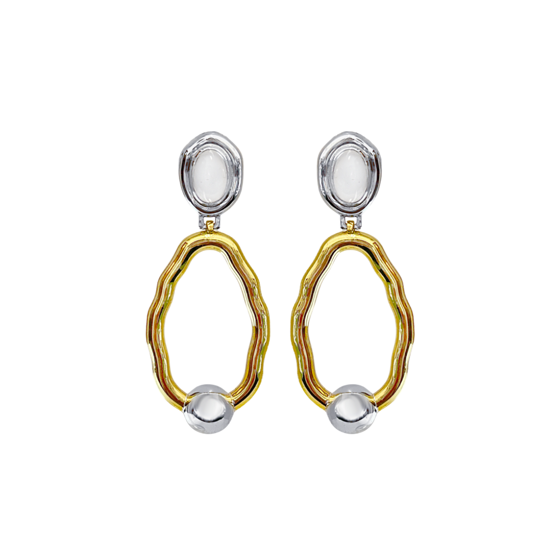 Embrace your inner supermodel with the LINDA Earrings! These iconic statement earrings feature mixed metals, cabochon crystal quartz, and a fluid abstract motif for the perfect amount of drama. Chunky yet chic, they'll have you feeling like an icon while strutting down the street on your next night out. Trust us, we're obsessed with wearing the Linda's and you will be too!
