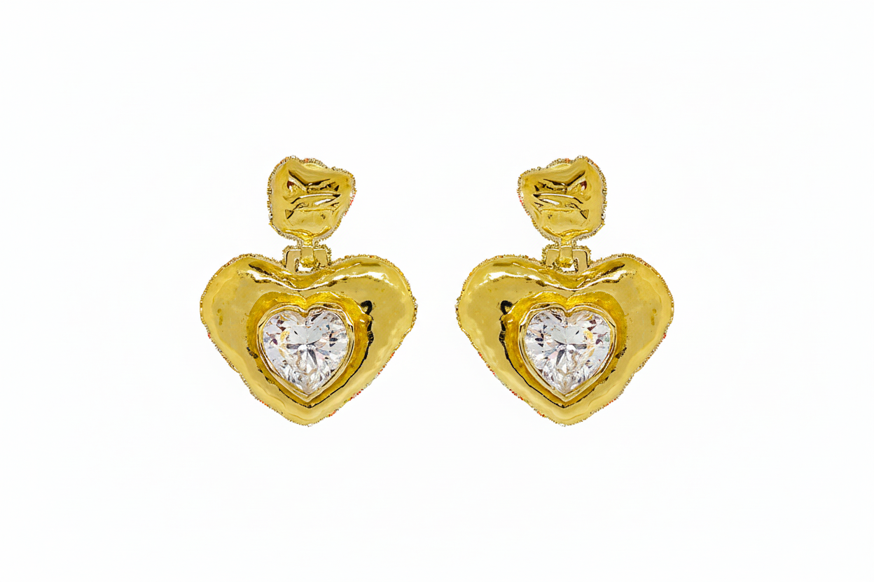A playful take on a classic feminine motif, the Suri Earrings reimagine the heart through the lens of traditional craftsmanship. Hand-finished in radiant gold with a sparkling White CZ gemstone, the Suri earrings merge age-old design techniques with a fresh, modern spirit. Bold yet tender, they speak to the contemporary woman who honours the past while embracing her own story.