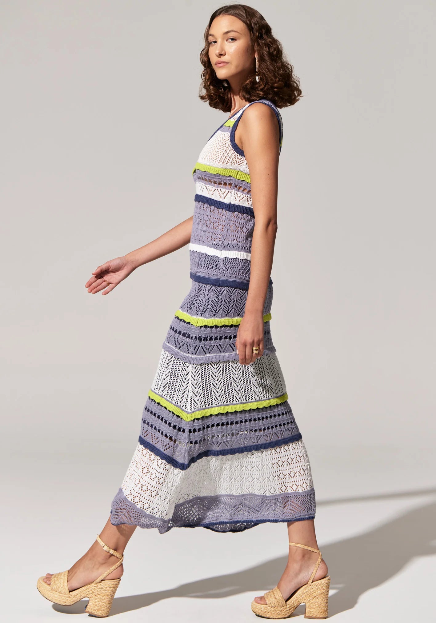 Featuring multiple pointelle stitches in four different colourways, the Paco Knit Tank is a stunning top for Resort.