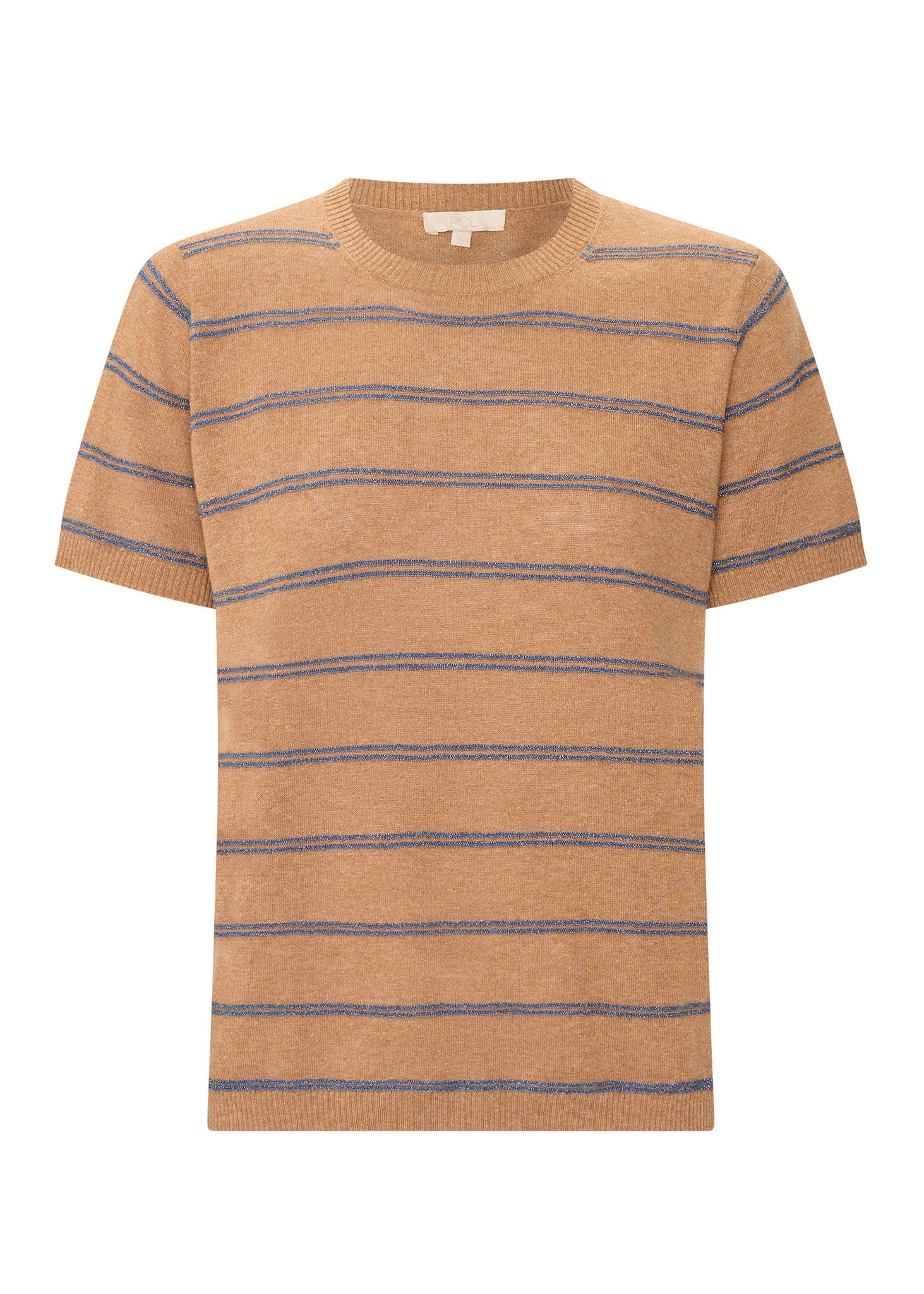 We love the easy elevated styling of the Sable Stripe Knit Tee. Featuring a round neckline and a classic fit, this cotton blend style features tiny lurex double stripes to bring a little sparkle into your everyday.