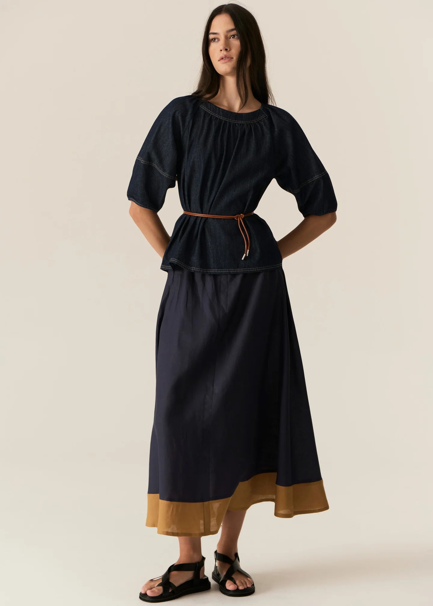 -Contrast panel at the hem.