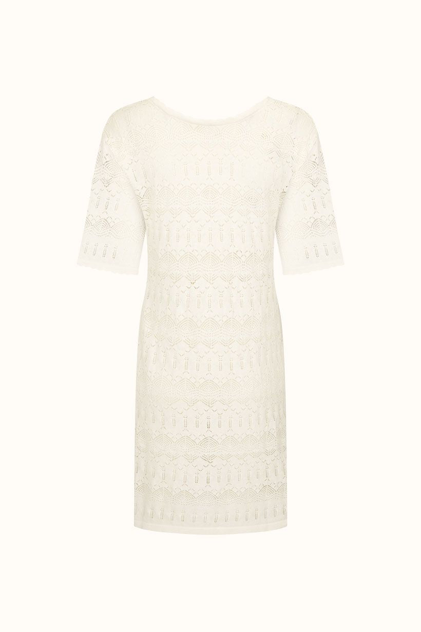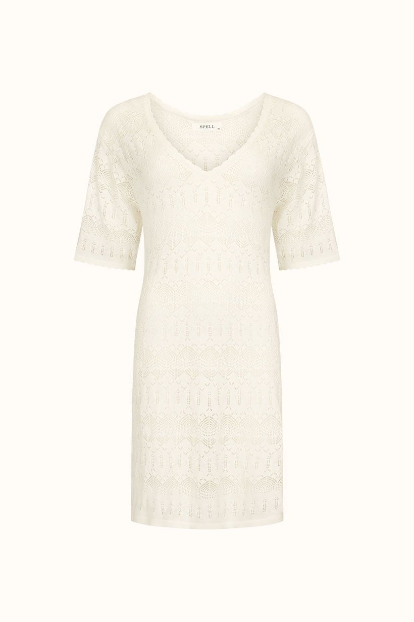Indulge in breezy comfort with our Siesta Mini Dress. Made from a luxurious blend of organic and recycled cotton, and linen for a sustainable touch. Featuring a feminine pointelle knit pattern, a flattering V-neckline, and charming scallop knit details on the neck and sleeve hems. Perfect for any occasion, in the fresh White Sand hue.