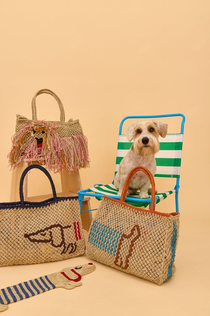 The Jacksons London Jute Bag | Breton Dog | Natural / Brown / Raspberry / Dark Navy