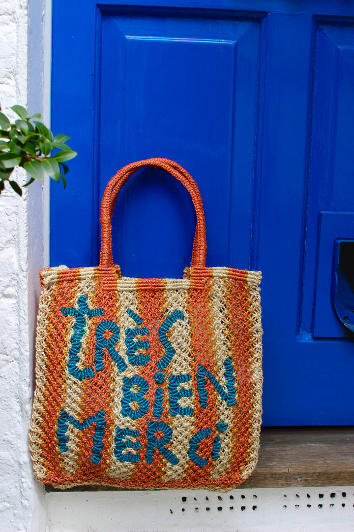The Jacksons London Lottie Jute Bag | Très Bien Merci | Orange/ Peach, Natural / Ocean
