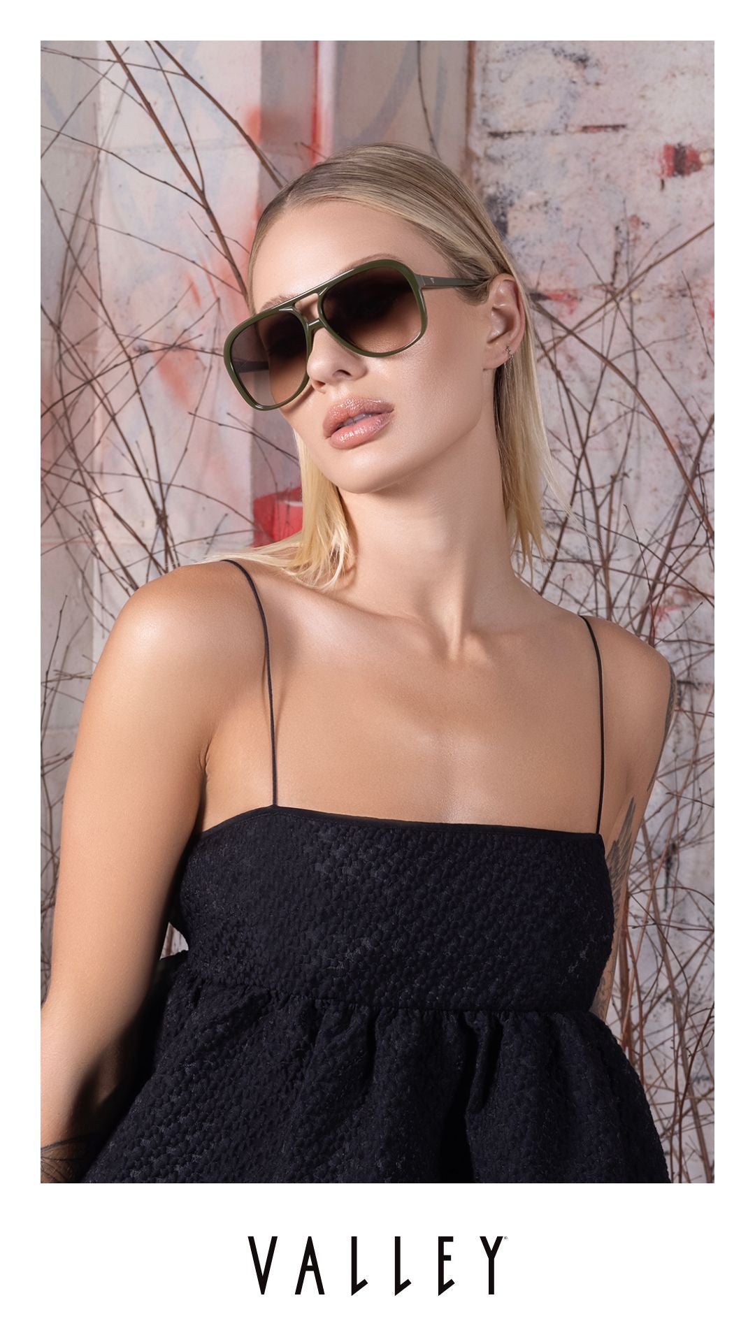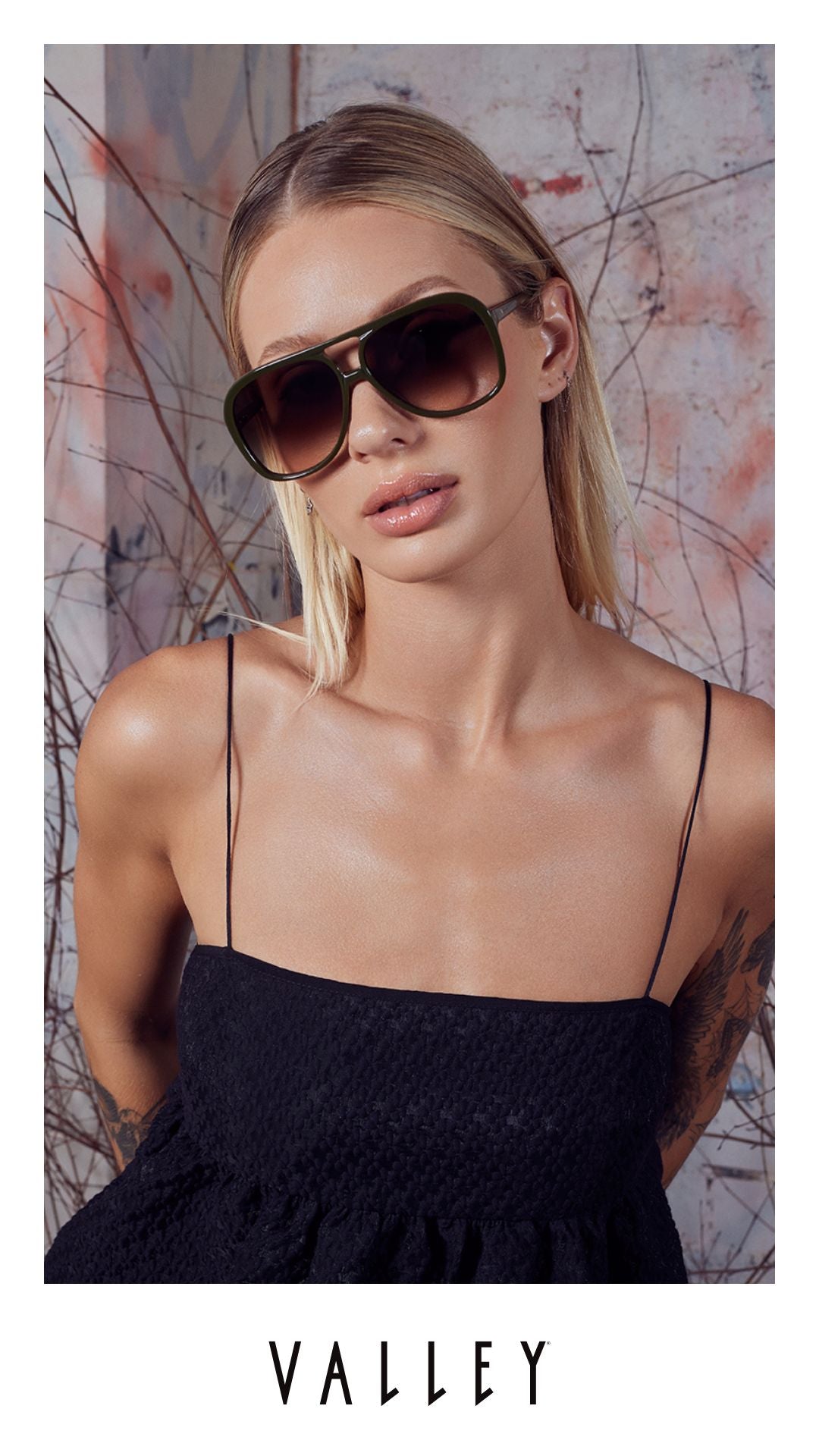 Valley Eyewear Bang | Army Green W. Gold Metal / Brown Gradient Lens