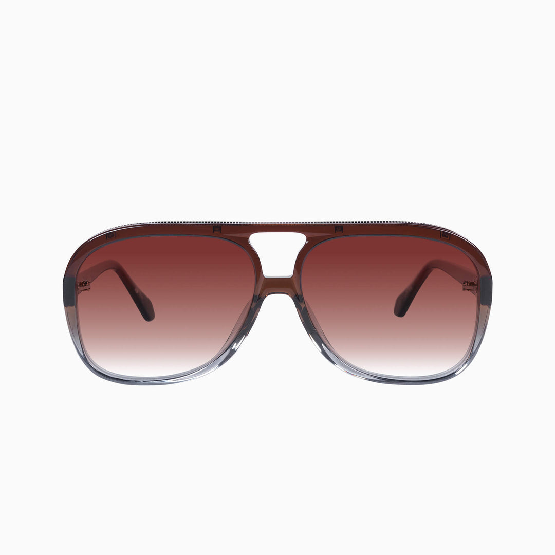 Valley Eyewear | Bang Bang | Transparent Chocolate Fade To Crystal w. Gold Metal / Dark Orange Gradient Lens